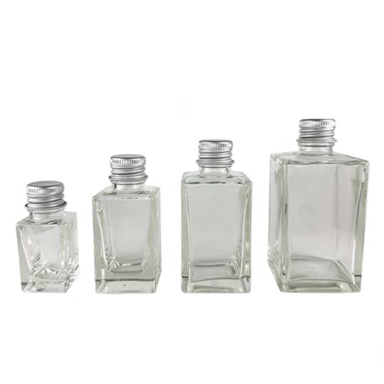 PM香料ビン(角)・透明 アルミキャップ アルミ 容量 10~100㎖ 入数 54本~